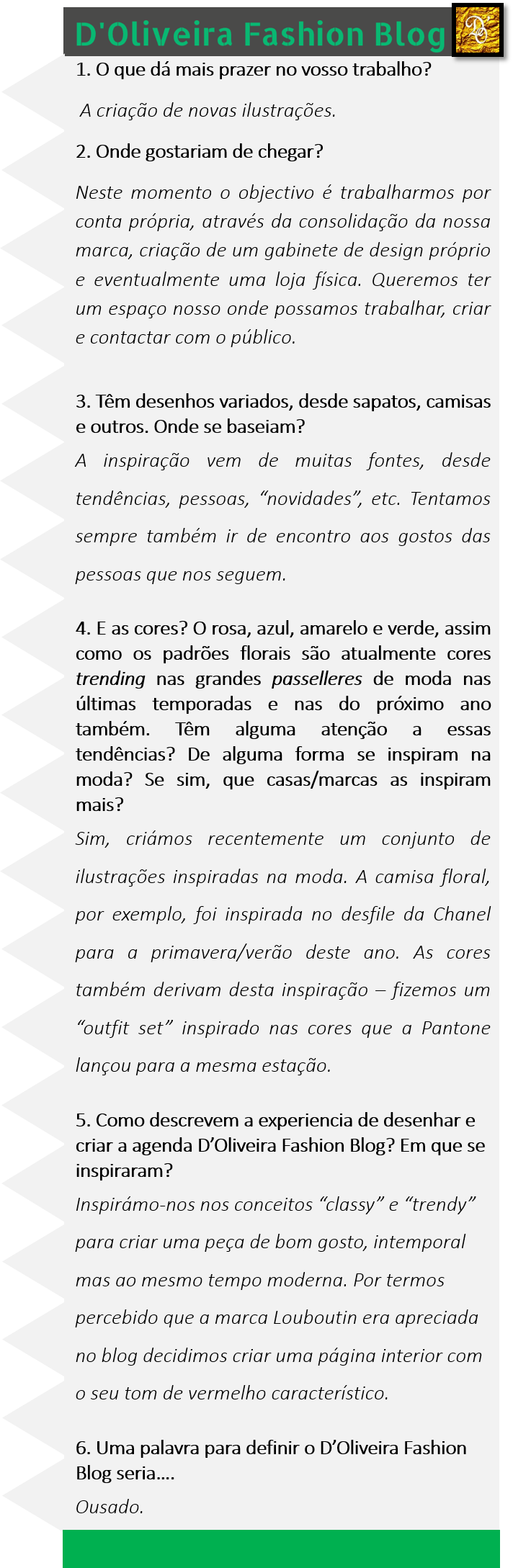 Almost one year & half after sewing my beloved blog ♥ – I know, it is crazy, already all of that time crossed by – there was the urge of materialize my passion for fashion & for my blog! So, D’Oliveira Fashion Blog & Purple Pineapple joined hands to give you this fantastic present – the D’Oliveira Fashion Blog AgendaInterview_DFBlog_PP